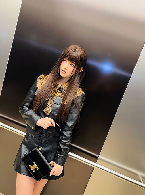 Celine全球代言人NewJeans Danielle以醒目豹紋拼接皮革襯衫及皮革短裙穿搭演繹Celine最新冬季女裝系列,手提全新Teen Garance包款展露青春的法式魅力。