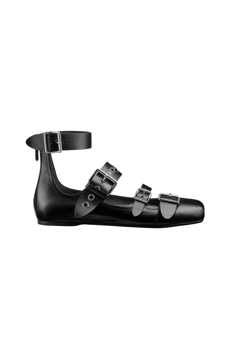 Dior 在 2025 早春度假系列帶來了有著龐克設計的芭蕾舞鞋,打破一般芭蕾舞鞋給人的甜美印象,具有個性的扣環設計,在反叛氣質中透露獨特的個人魅力。