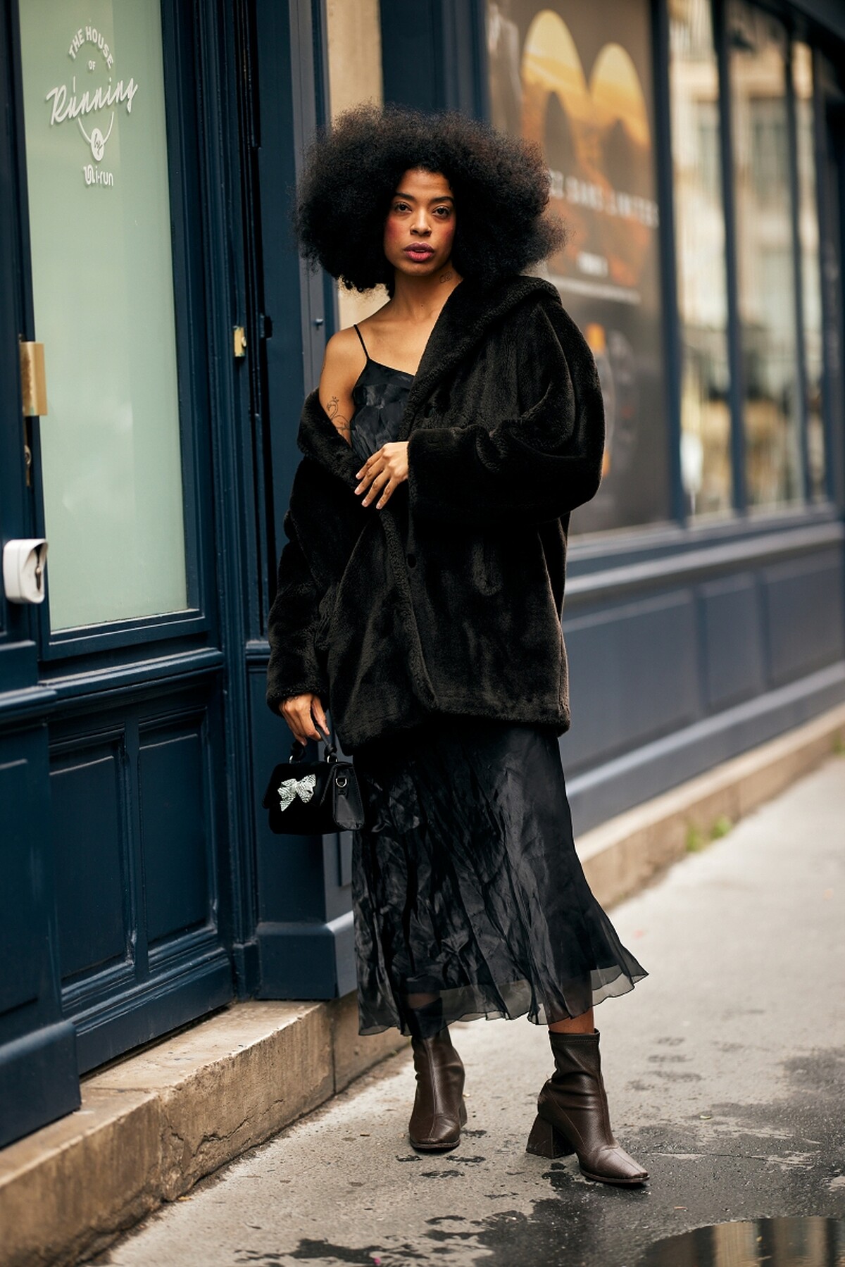同色系的長靴與下裝能延長腿部線條,避免顯得身材矮小。比如黑色緊身褲搭配黑色過膝靴,視覺上能讓腿部顯得更修長。