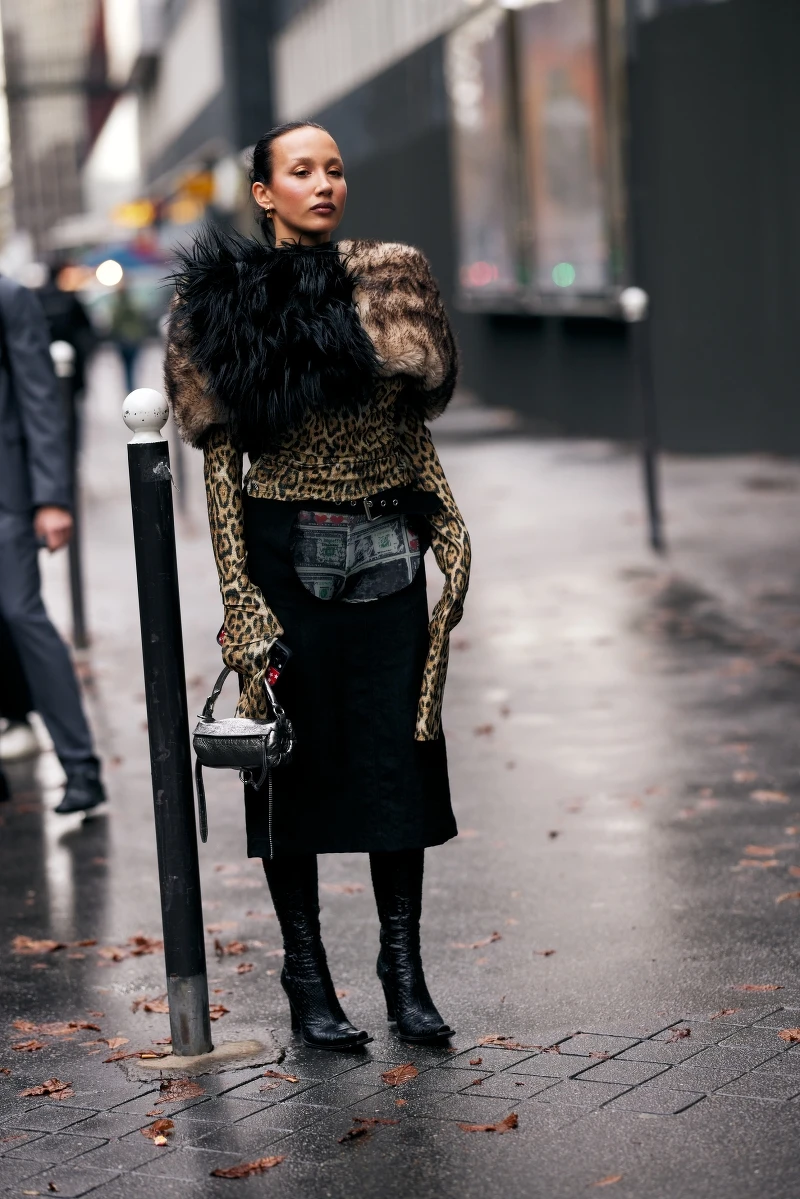 穿長靴時搭配緊身褲或貼身裙,能讓腿部看起來更加纖細修長,尤其是搭配過膝靴或膝下靴時,這種收緊效果會讓整體比例更佳。