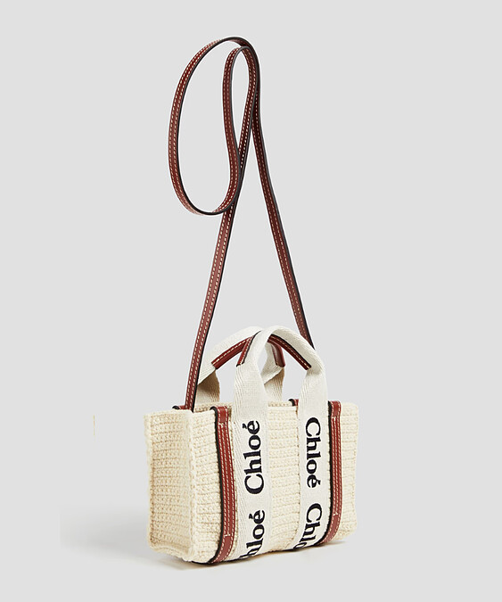 Woody 皮革拼接鉤織托特包