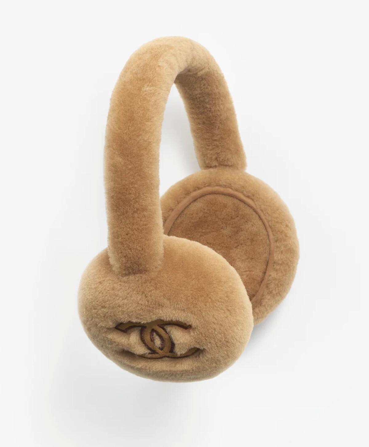CHANEL 2024/25 Coco Neige 焦糖色雙面剪羊毛耳罩,毛茸茸的焦糖色羊毛,絕對是今年秋冬卡哇伊的亮點配件。