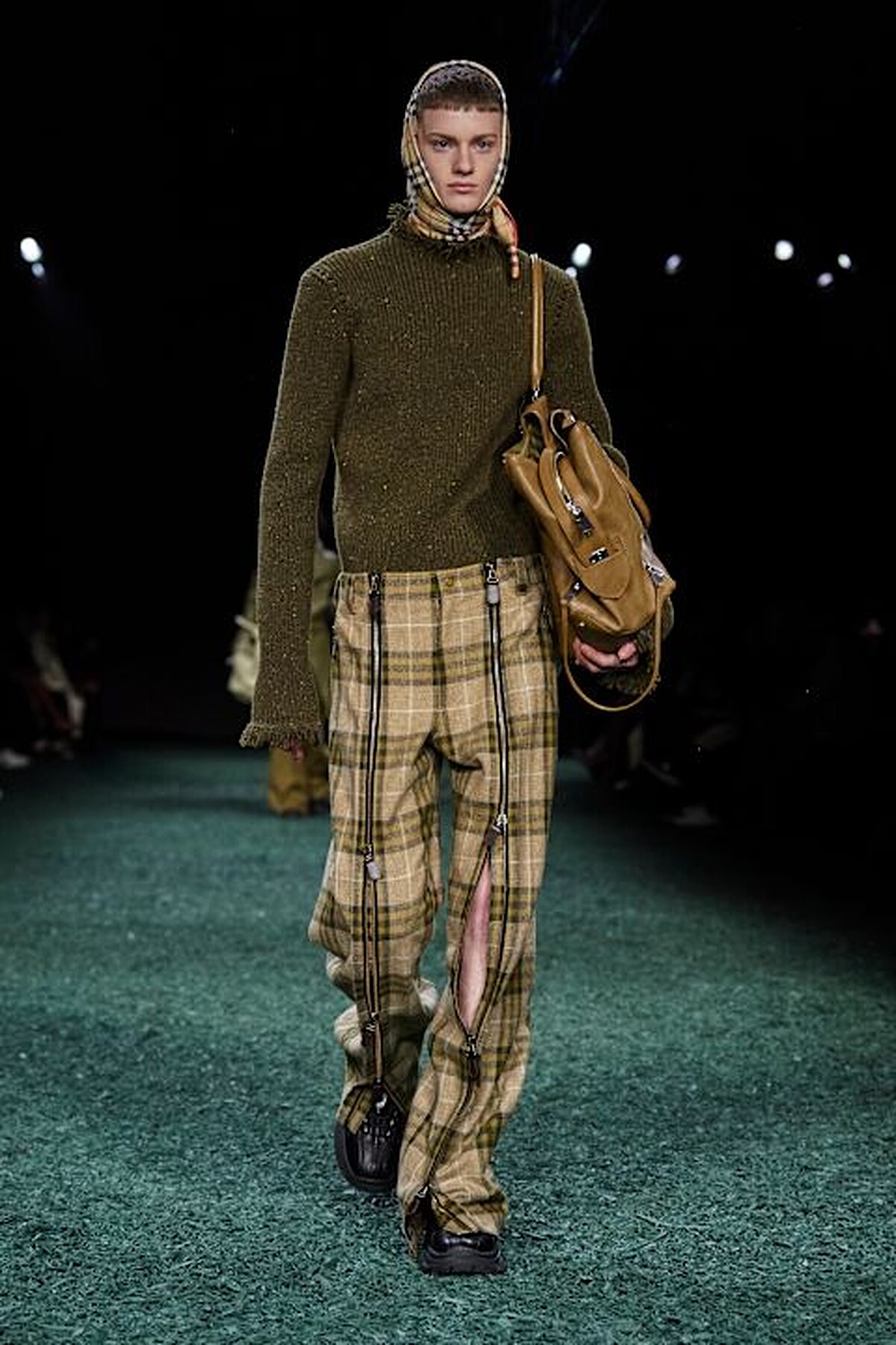 近期 G-Dragon 頭巾時尚席捲各大平台,實際上這原本就常見於伸展台上的秀上造型,Burberry 在 2024 秋冬系列就示範了以經典格紋頭巾詮釋男友風的造型演繹。