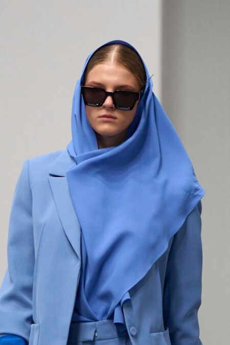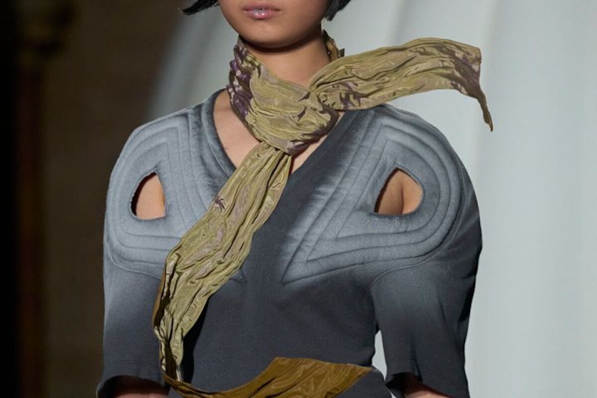 以實用主義的工裝風格贏得時尚圈關注的 Kiko Kostadinov 在最新季度系列上帶來皺褶圍巾的設計,可塑形的線條能為穿搭帶來更多可能性。
