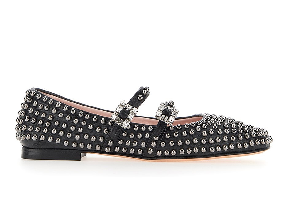 今年具有高人氣的 Roger Vivier 芭蕾舞鞋搭配叛逆的鉚釘細節,可甜美也能個性,冬天推薦使用白色長襪的搭配,讓你的每日穿搭展現更多可能!