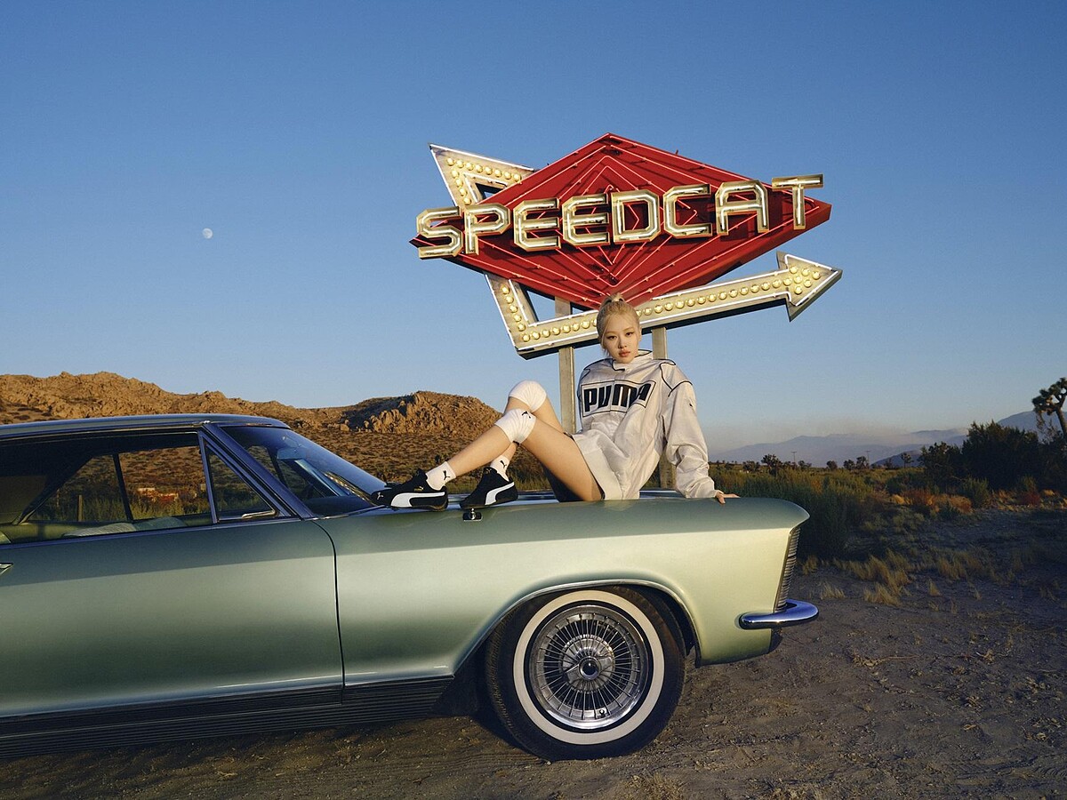 ROSÉ就連在宣傳APT.新曲的時候也不忘秀出她的新歡愛鞋,以個性硬派樂團背心搭配泡泡短裙的著裝,再加上PUMA SPEEDCAT鞋款點綴,可愛俏麗CHILL到不行,同時也完美展現賽車時尚風可以玩轉造型創意的混搭新靈感!