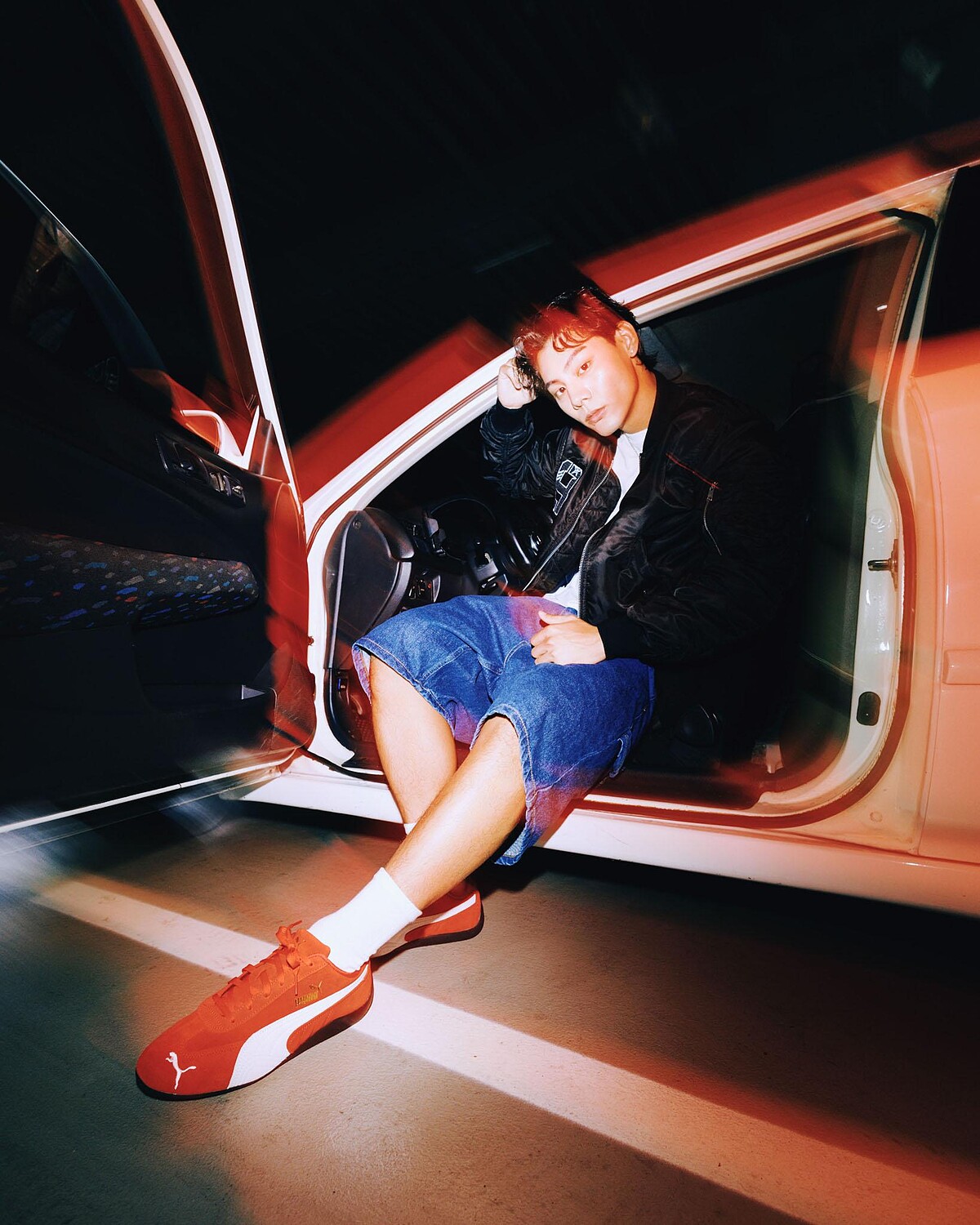 在《全明星運動會》中大受歡迎的發電機—演員各務孝太,以鴨舌帽、白TEE與黑色賽車風外套搭配牛仔短褲營造不羈街潮帥氣感,腳上的極速紅PUMA SPEEDCAT鞋款更是大膽點出充滿活力型格的出色態度。