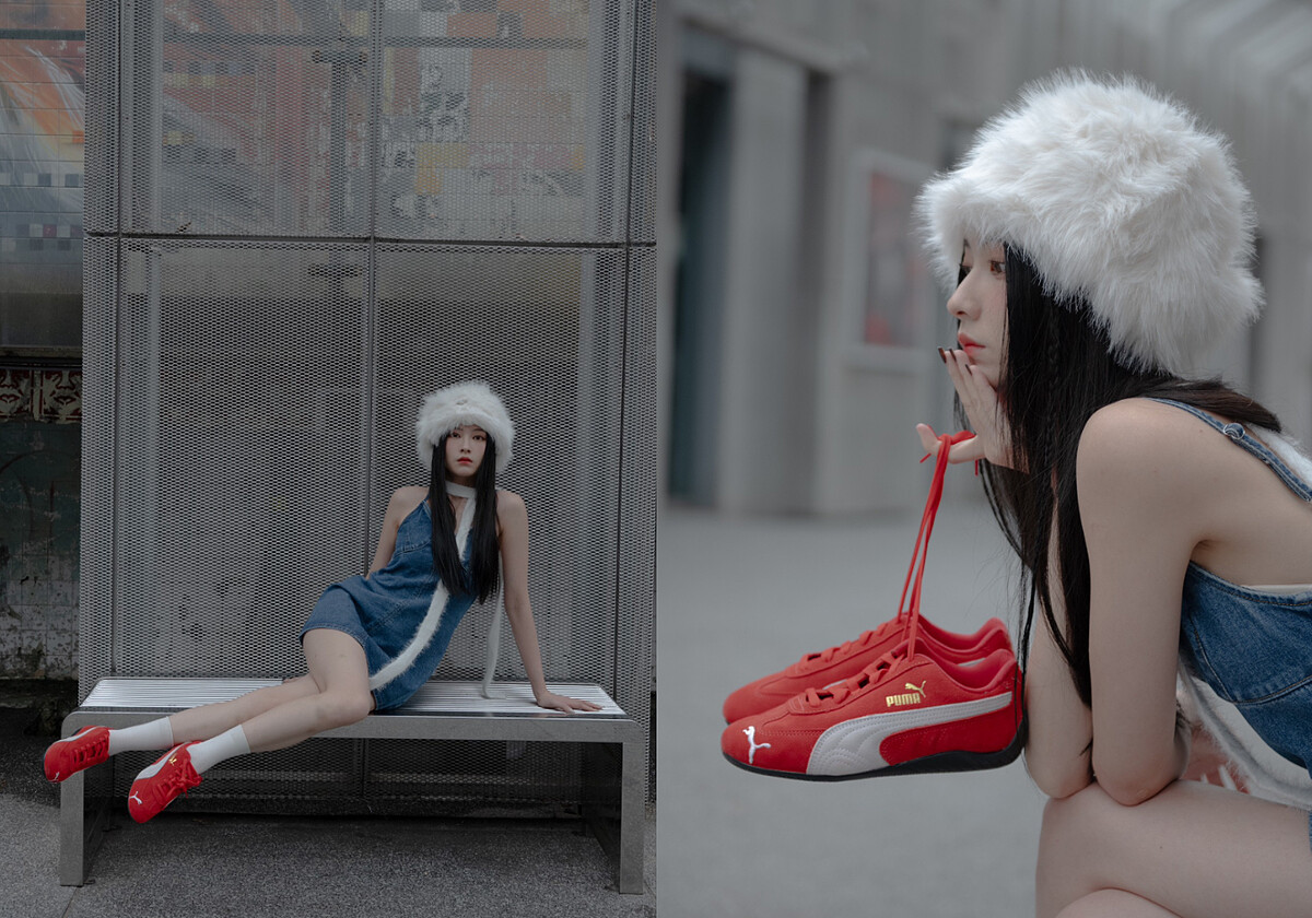 有著氣質型空靈美少女形象的羅珮恩Christine,透過穿搭創意彰顯了Z世代女生對個人特色鮮明造型的主張,連身短洋裝搭配毛茸茸帽款與圍巾,配上搶眼的極速紅PUMA SPEEDCAT鞋款,以搞怪時髦存在感十足的形象成為街頭上最亮眼的風景!