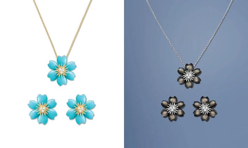 揉合精湛珠寶工藝及對寶石嚴格選材的獨到品味,世家總是可以塑造出生動傳神的Rose de Noël系列新作。今年新作則以灰色珍珠母貝與綠松石兩項寶石為主軸,色澤均勻可折射綠色至粉紅色柔和虹彩的上乘灰色珍珠母貝,呈現由淺藍道深藍不等鮮豔色調的綠松石,各自搭配上白K金與黃K金的相應寶石貴金屬底座,加上每枚圖騰中央通過Van Cleef & Arpels梵克雅寶等級標準的三顆閃爍圓鑽,交織出繽紛璀璨的效果,令珠寶作品更瑰麗動人,是今年冬日值得珍藏的夢幻獻禮首選。