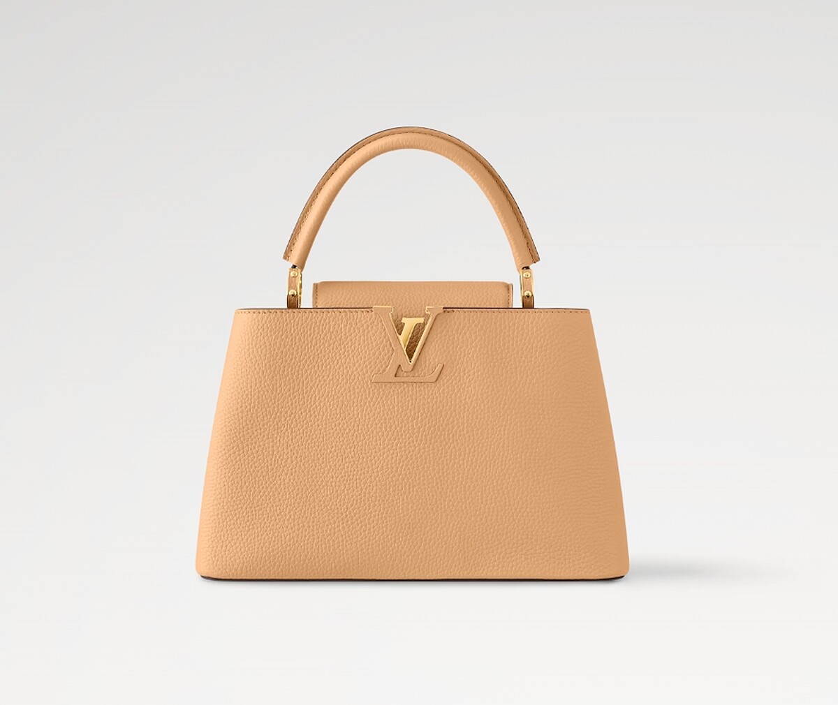 《一箱情緣》劇中那個神秘的行李箱是整部劇的重點,徐玄振放在行李箱上的手袋,則是這只來自Louis Vuitton 經典系列的Capucines 手袋,只不過她使用的是黑色款式,皮片為駝色撞色、手提把則是為呼應行李箱的紅色,此圖為類似款參考。