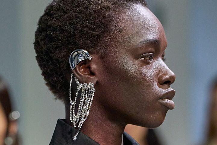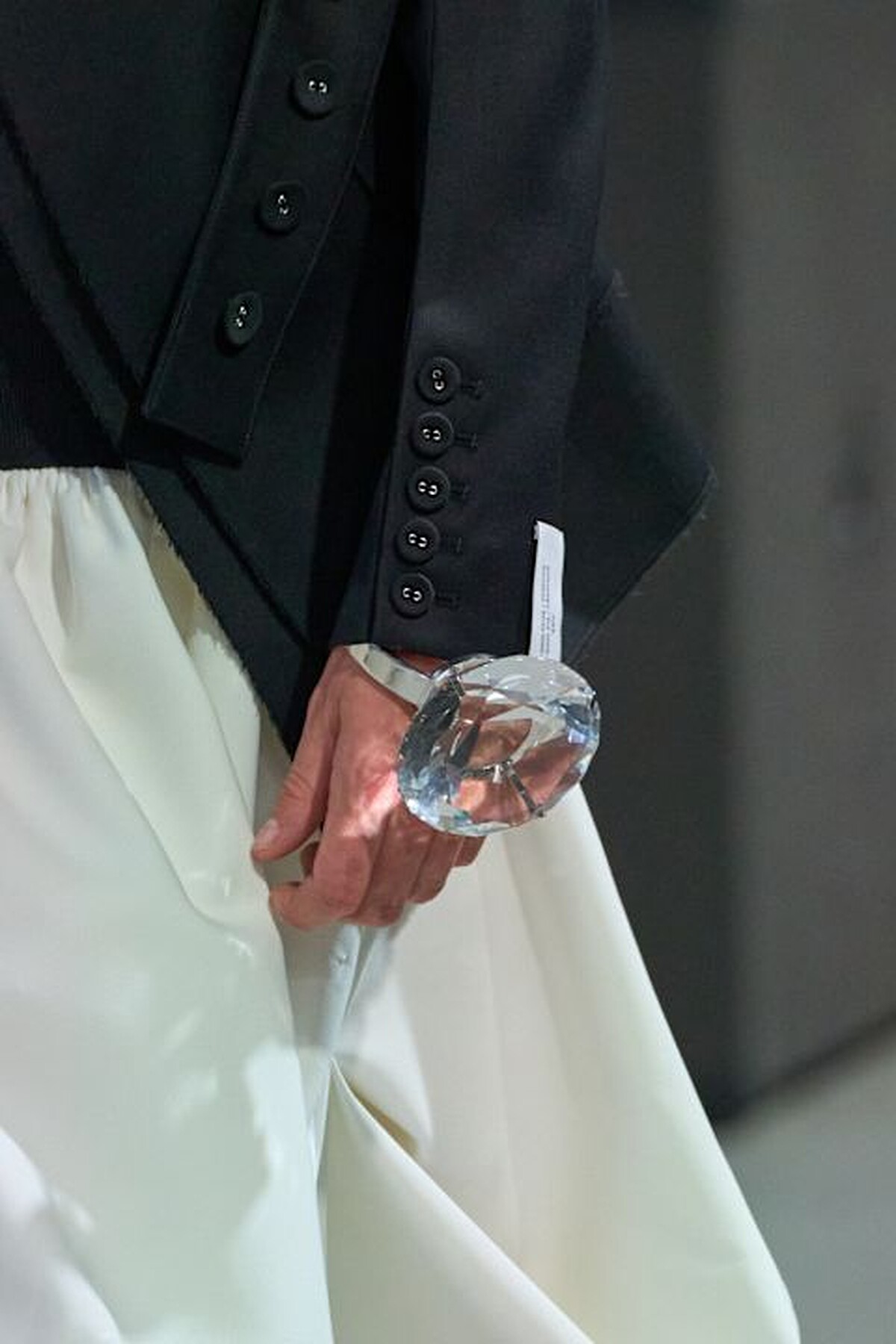 最後同樣來自先鋒設計師 Rokh 2025 春夏系列的秀上造型,超大的鑽石設計讓人遠遠就看到你,有趣的在於它是一只巨大的鑽石手環,即便穿著簡單也具有強烈的存在感!