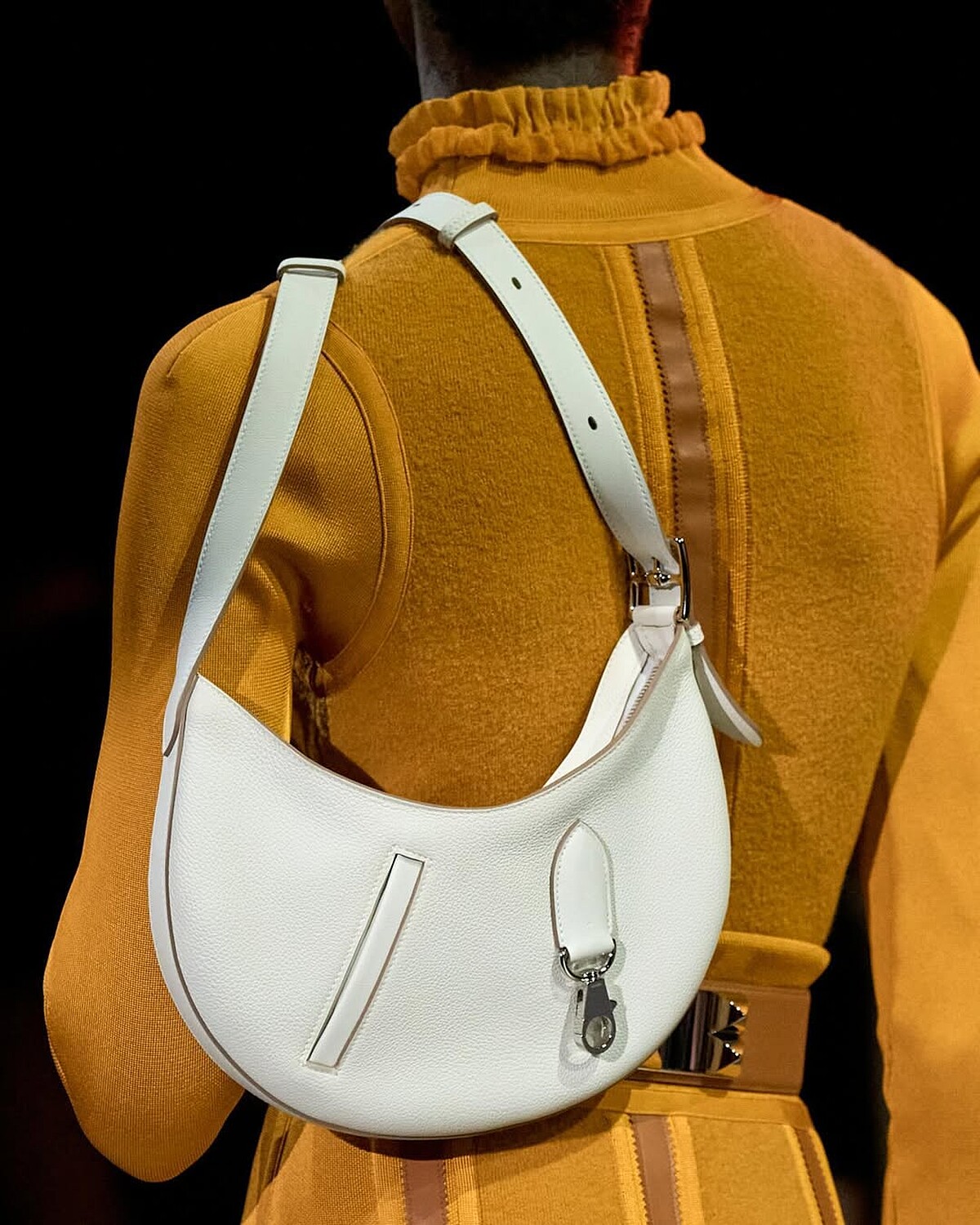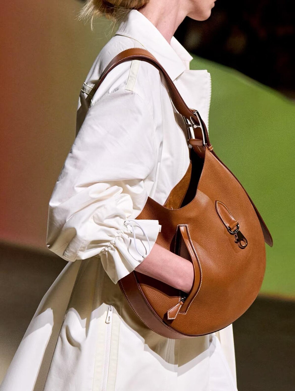 愛馬仕Arcon系列手袋首次亮相於2023年春夏系列,大尺寸的馬鞍包型,形狀與月亮相似,因此也有月亮包的暱稱,包面上的小夾層其傾斜的角度就如同外套上的口袋,背在肩上時是真的可以將手插在裡頭,率性的態度油然而生,這也正是為什麼Arcon手袋首次出現在秀上即吸引了許多目光。