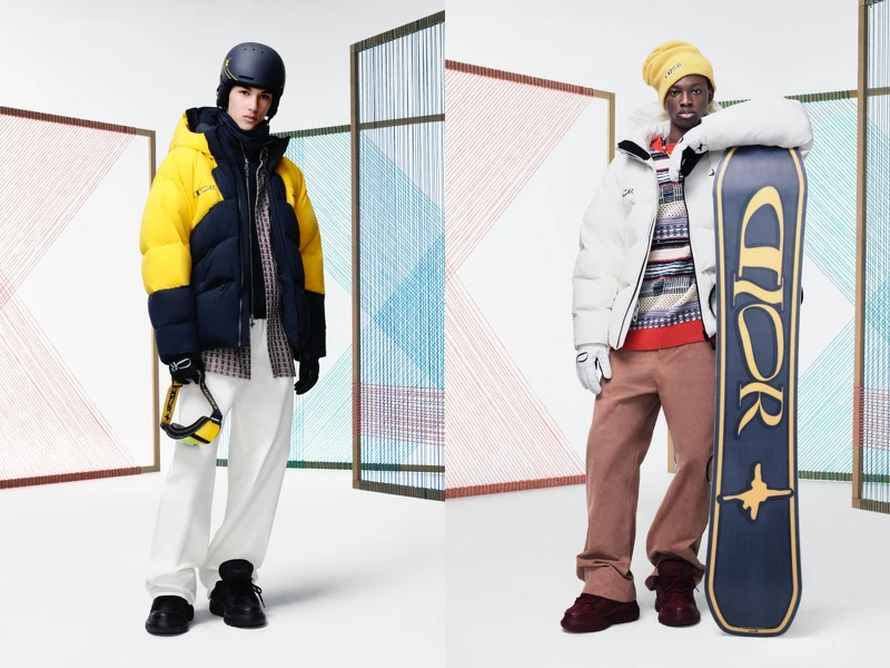 本次合作系列以運動休閒為靈感,結合舒適的寬鬆剪裁和實用機能,完美融和Dior的時尚美學、日本DESCENT的滑雪服技術,還有來自西非布吉納法索的傳統織工,呈現出一場跨文化的時尚對話。服裝設計選用 Dior 經典花呢布料,搭配非洲風情的編織細節,以及丹寧、針織衫和毛絨單品,既挺拔又帶有柔順垂墜感。部分單品使用有機或回收材質,將永續與風格兼顧,滑雪服更特別為寒冷氣候設計,實用又保暖。配件同樣別具亮點,從瑞典POC的高科技裝備到 Dior工坊打造的毛帽、滑雪手套、雪地德比鞋等,每一件都兼具功能性與時尚感。