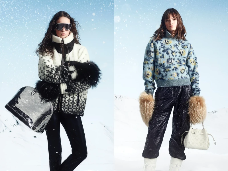 系列配件也不容錯過,LV Snow系列手袋採用漸層銀色Monogram打造,營造出宛如霜覆的獨特效果、Coussin手袋的漸層色系更是時髦亮眼。Monogram Miroir 手袋則以高光壓印技術重塑經典,結合復古與未來風格,吸睛又百搭。除此之外,系列還推出流線型滑雪鏡及多樣配件,讓冬季穿搭實用又時髦。