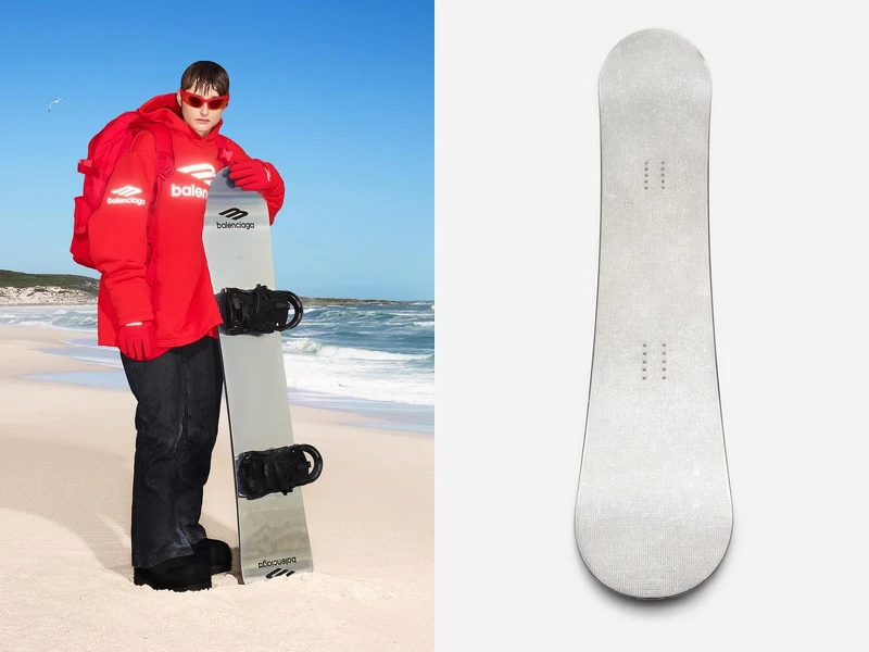 Balenciaga推出全新的Skiwear系列,從外套、內搭、鞋履到運動配件都採用了專業的技術與材料,確保造型與機能兼具,除此之外,最亮眼的是一款鑲嵌了24,000顆水晶且全球限量8件的手工水鑽滑雪板,每一塊都華麗又獨特。