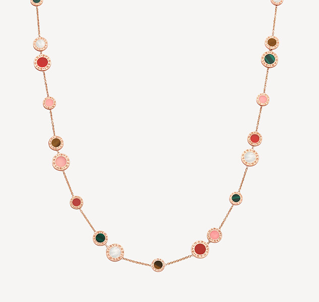 BVLGARI寶格麗Bvlgari Bvlgari系列18玫瑰金長項鍊,鑲飾珍珠母貝、粉紅色蛋白石、虎眼石、孔雀石和紅玉髓元素,NT$ 522,000