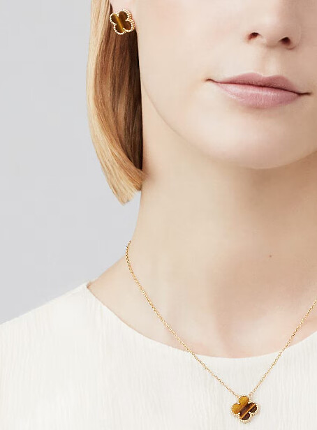 VAN CLEEF & ARPELS(VCA)梵克雅寶Vintage Alhambra系列吊墜項鍊,18K黃金,虎眼石,吊墜與項鏈的鏈條相連接,NT$106,000
