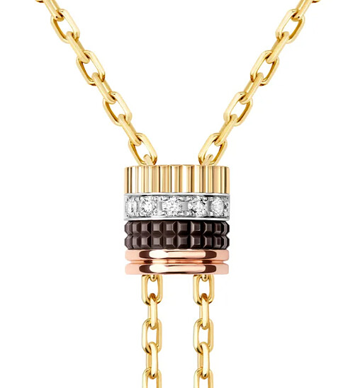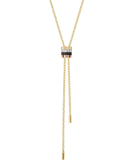 BOUCHERON寶詩龍Quatre Classique系列長項鍊,可用作領帶裝飾或長項鍊穿搭,也可轉於背部,更顯搖曳動態。 18K黃金、白金、玫瑰金、棕色PVD、12顆0.18克拉圓形鑽石,NT$218,000
