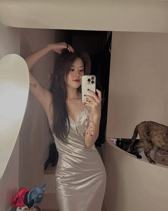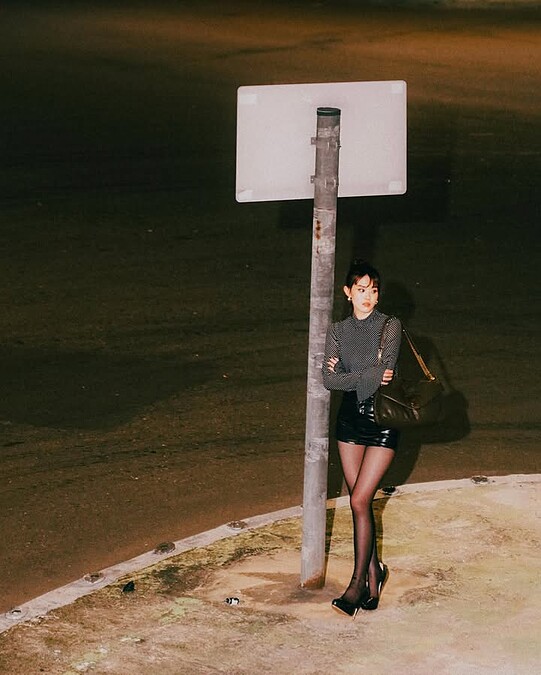 邱偲琹在戲劇中曾展現性感的形象,雖然戲外較多的是氣質簡約的打扮,但她仍不吝嗇展現女人味魅力的一面,她在一套Saint Laurent的垂墜襯衫、皮革短褲與絲襪的Look裡,化身充滿氣場與知性的摩登女郎。