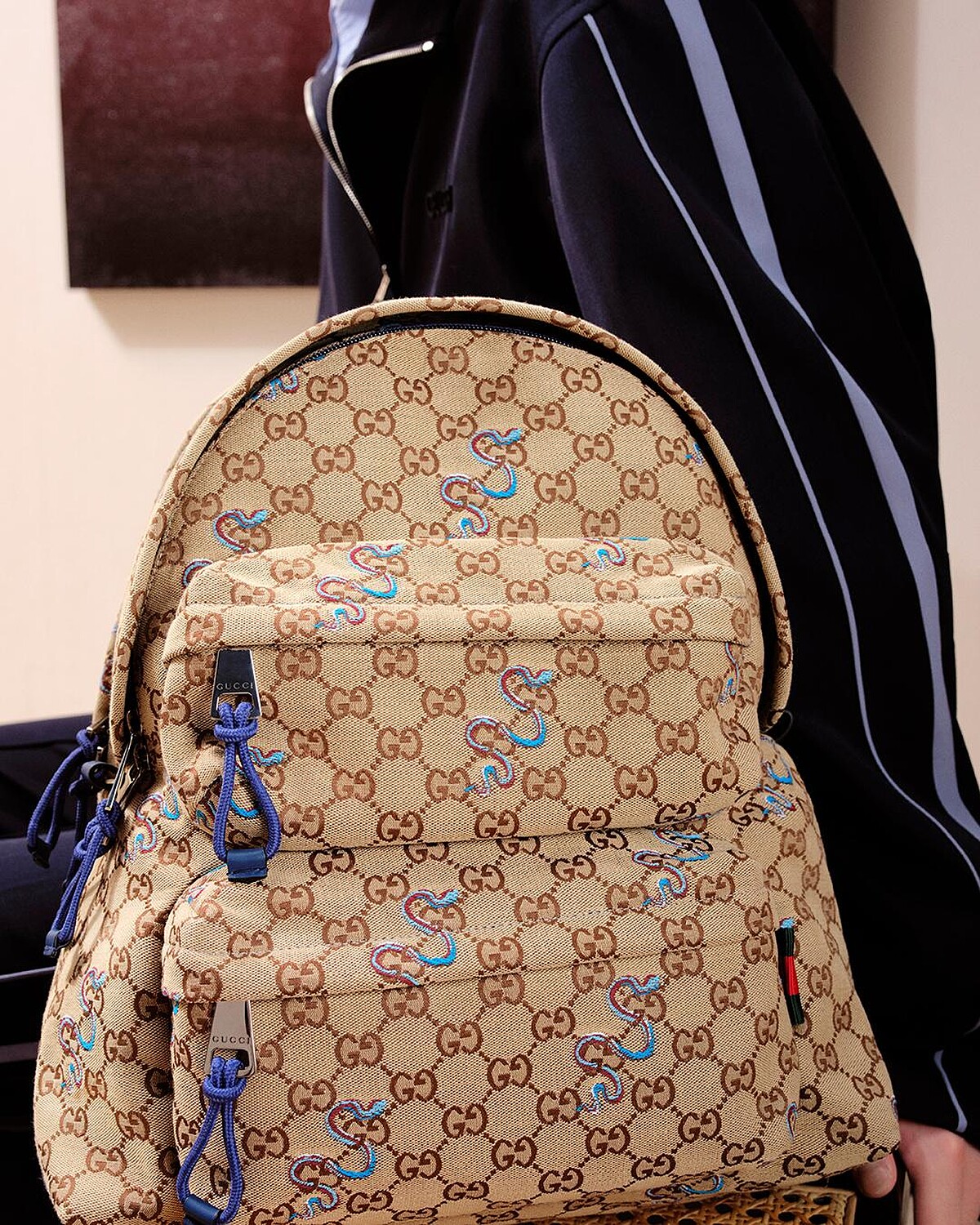 Gucci春節形象大片由代言人肖戰與倪妮出鏡演繹,創意總監Sabato De Sarno在GG Monogram上注入了藍色的小蛇刺繡圖騰,並為女裝配件臻選出Ancora紅色的單品,討個吉利!