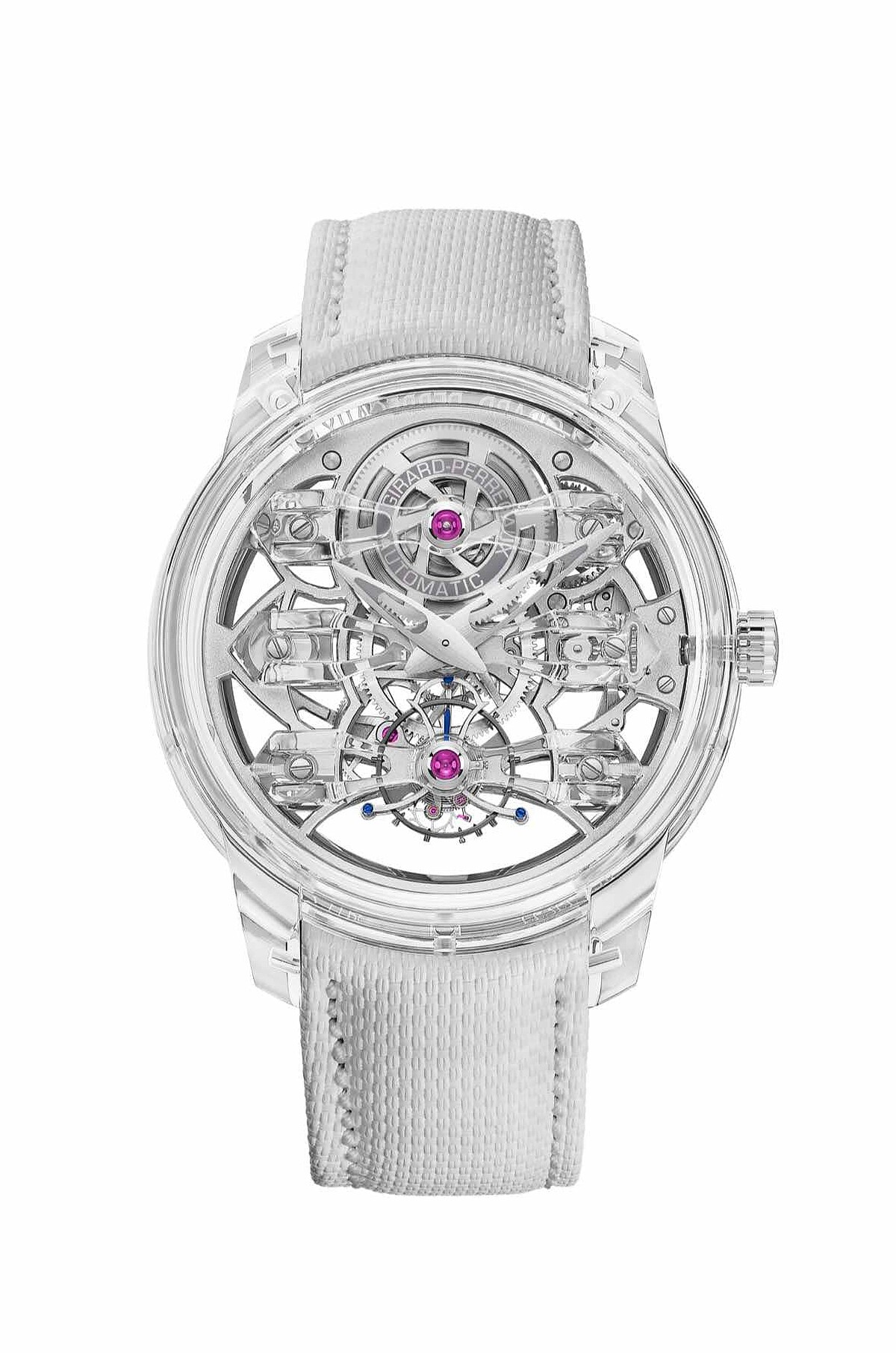 Bridges 金橋系列 Quasar Light 三金橋陀飛輪腕錶,藍寶石水晶錶殼,無錶盤,陀飛輪框架由79個零件組成,總重量僅0.250克,標誌性的GP芝柏表板橋以藍寶石水晶玻璃製成,限量8只,Girard-Perregaux。