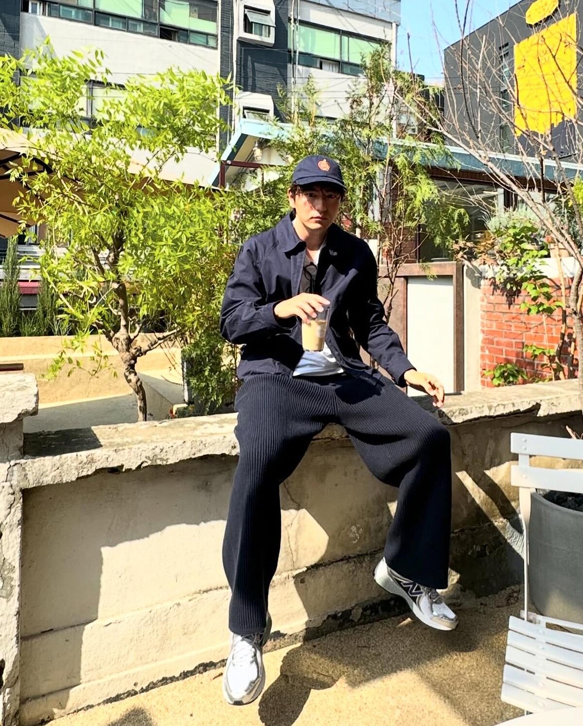 李陣郁在他的日常陽台點心時光裡,他以深藍色的同色系穿搭,搭配一雙New Balance藍銀配色的860V2鞋款,與New Balance熱賣的 1906R與2002R鞋型一樣,屬於機能網布鞋款,復古外型則是時下話題潮鞋的共通特色。