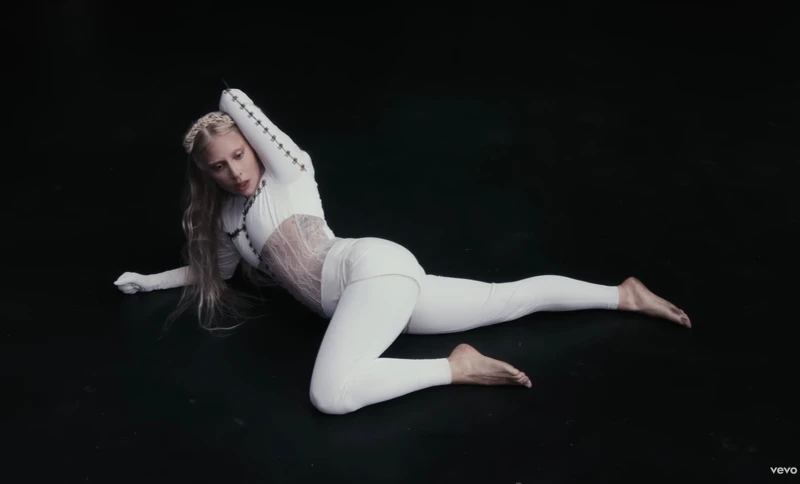 最後一套Lady Gaga脫下高跟鞋,換上同樣出自Samuel Lewis之手的白色破壞感洋裝,描繪出混亂、凌亂的姿態,彷彿也象徵著心中純淨的本質,其實Lady Gaga在葛萊美獎紅毯上的黑色哥德風禮服,亦是穿著Samuel Lewis的作品,從雙方近期密切的合作,看得出Lady Gaga對他的設計特別有信心。