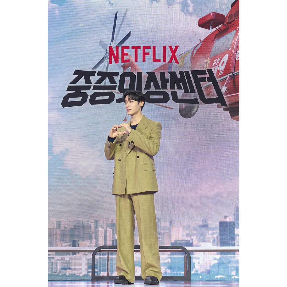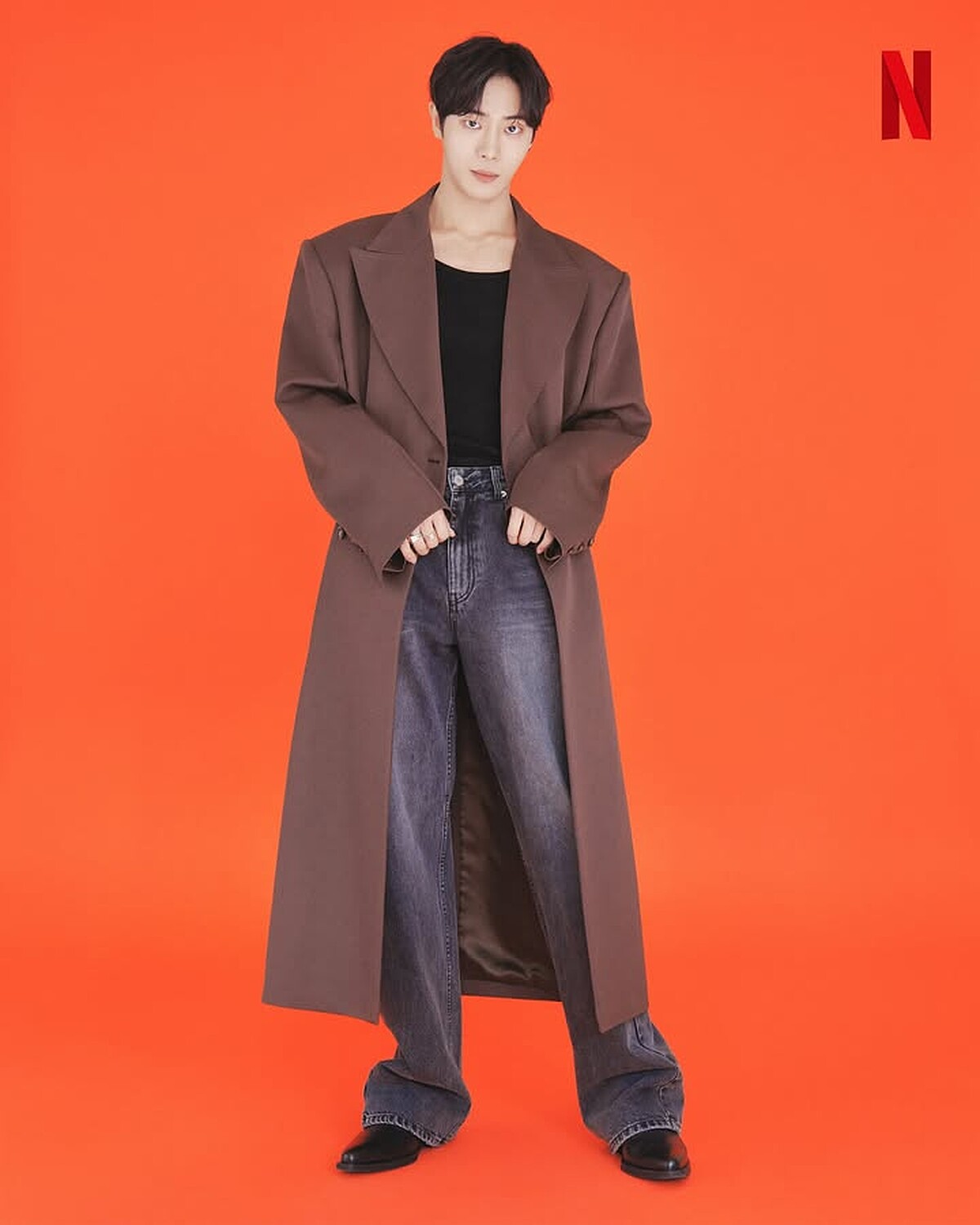 在Netflix為《外傷重症中心》演員們拍攝的戲外時尚大片裡,秋英宇搭配了一套寬肩設計的長版大衣,讓身形比例更趨完美,同時擺脫稚嫩,給人一股穩重的歐爸感,與經常穿著制服演戲的他形象大不相同。
