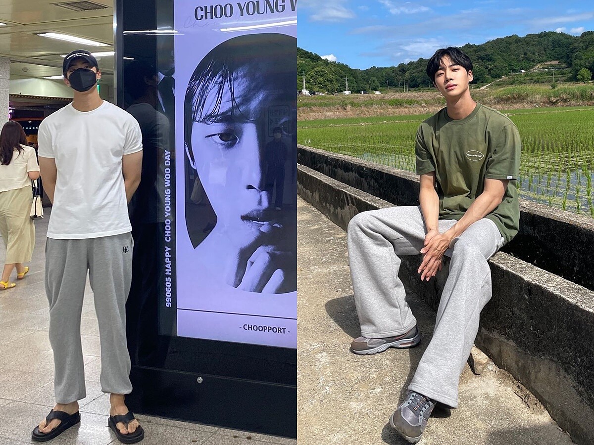 秋英宇平時的穿搭選擇幾乎都以舒適為主,翻開他的Instagram會發現,他很喜歡穿著棉褲出門,無論是與朋友的輕鬆聚會、在片場或是與看板上的自己合照,他一律都套一件灰色棉褲就出門。