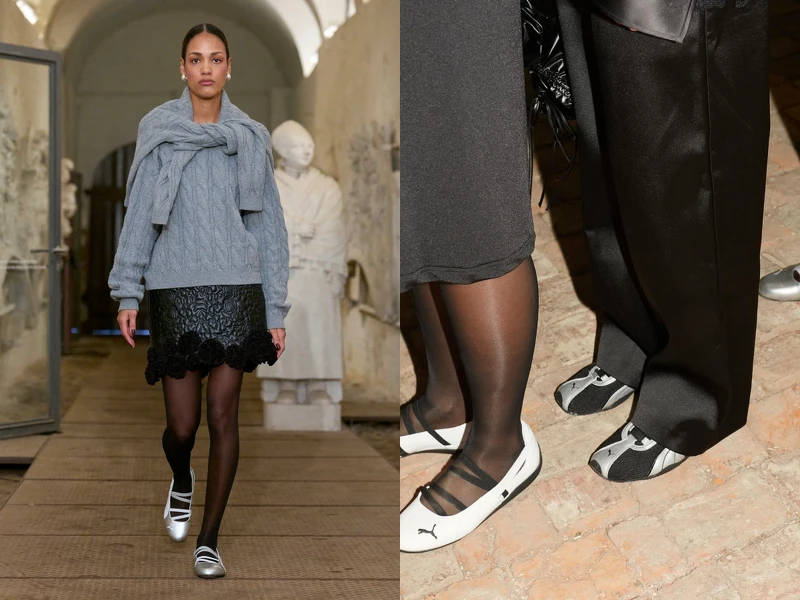 在Rosé加持之下的PUMA帶著賽車鞋強勢回歸時尚界,熱度到了今年仍是居高不下,就在最近的哥本哈根時裝週上,永續服裝品牌OpéraSPORT秋冬系列中竟然曝光了PUMA全新的Speedcat Ballet鞋款!