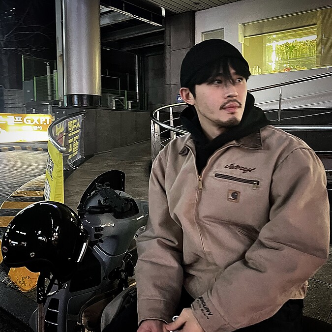 鄭宰光本是眼神圓潤發光的狗狗相,膚質也是一級棒,給人乾淨乖巧的印象,不過他也曾嘗試過蓄鬍頹廢的風格,搭配街頭工裝路線的穿搭,化身為充滿侵略性的野性男。