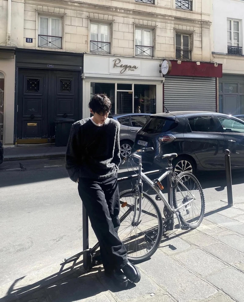 白敬亭的穿搭不會刻意追求浮誇,黑灰色毛衣外套搭配黑色內搭,整體色調低調沉穩,窄框墨鏡則營造出一絲神秘與時髦感,打造從裡至外的內斂氣質可以說是白敬亭的強項。