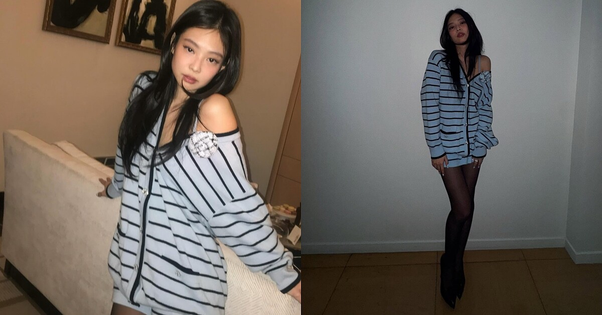 Jennie根本是「行走的帶貨女王」,這套香奈兒的套裝被她穿出休閒又不失高級的感覺,關鍵在於透過「Less is more」的穿搭技巧,上身和下身選擇相同系列的條紋款式,滿足套裝給的正式和貴氣感,故意要穿不穿的穿法看起來更有時髦態度,當然也可以別上一款醒目的別針裝飾,增添細節。