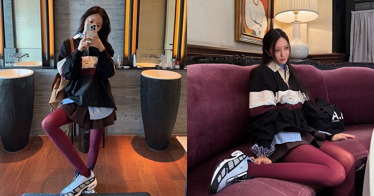 朴宣映(藝名孝敏)這套推薦給喜歡「甜美運動風」的你,仿大學T設計的翻領上衣,寬鬆的版型穿上自帶慵懶和復古感,秋冬還可以在裡面疊搭亮色系的襯衫,讓視覺效果更豐富,下身可以透過百褶裙或是蛋糕裙等來打造輕盈的效果,若還想要在看起來更搶眼,不妨嘗試看看和上衣同色系的特殊色褲襪,保證出門回頭率激增。