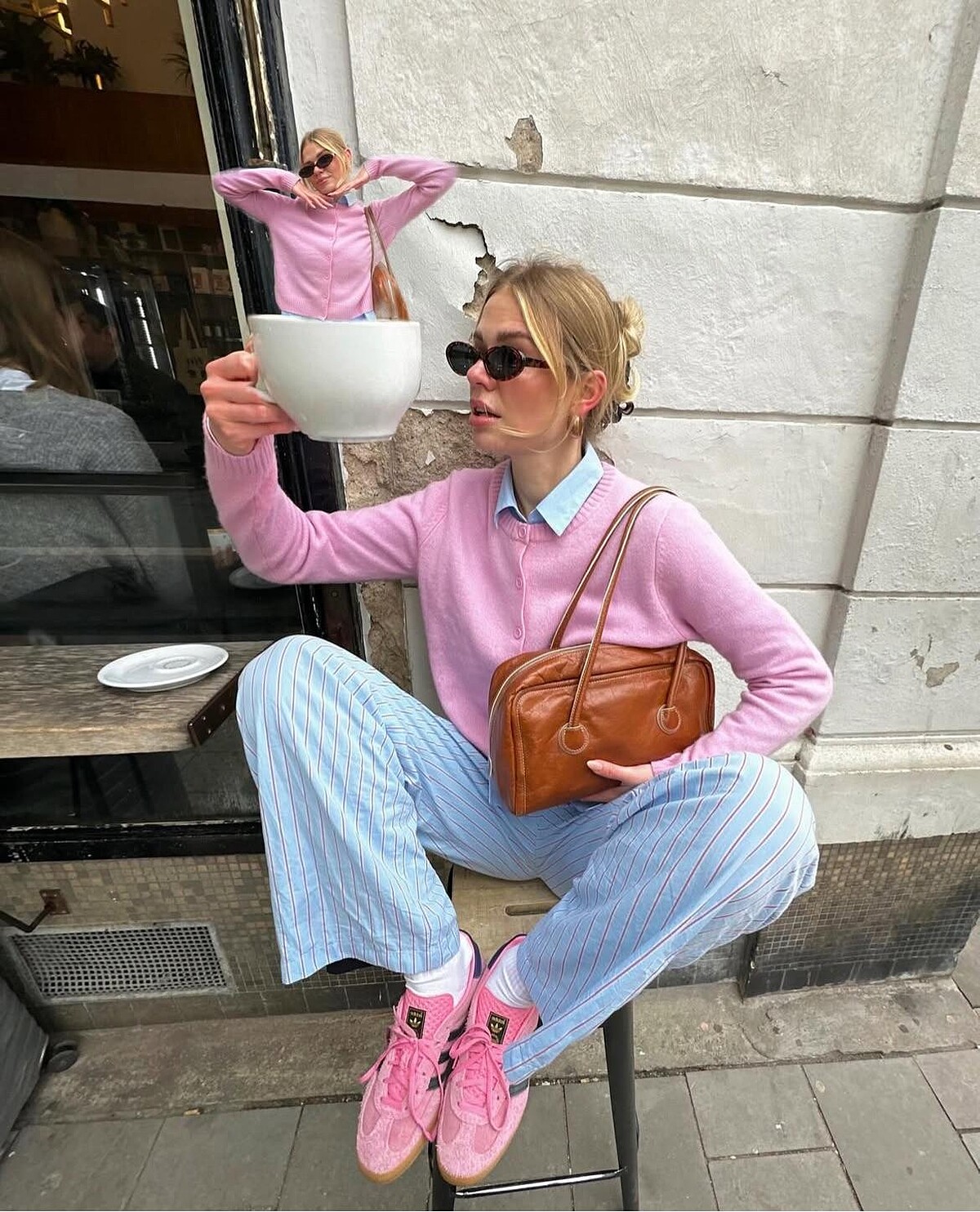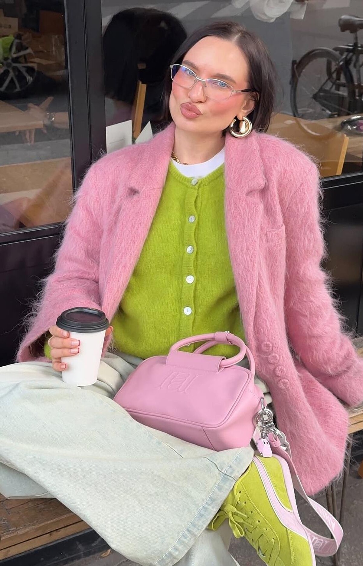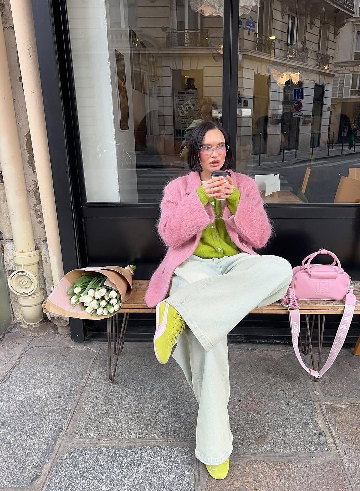 粉色與綠色兩個對比的顏色搭起來意外的可愛!是歐若風裡最搶眼的配色組合,不介意成為街上焦點的你,必須嘗試一遍50%粉比50%綠的Look,像是運用粉色外套、手提包,搭配綠色針織衫、球鞋,那份春日的自然氛圍與活力立刻顯現。