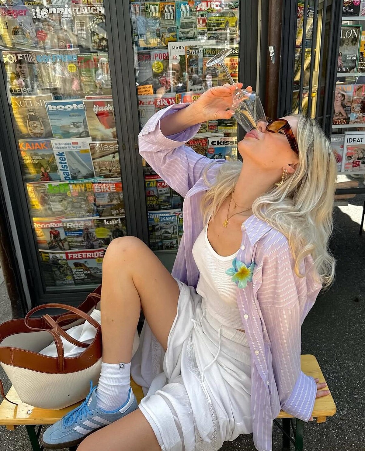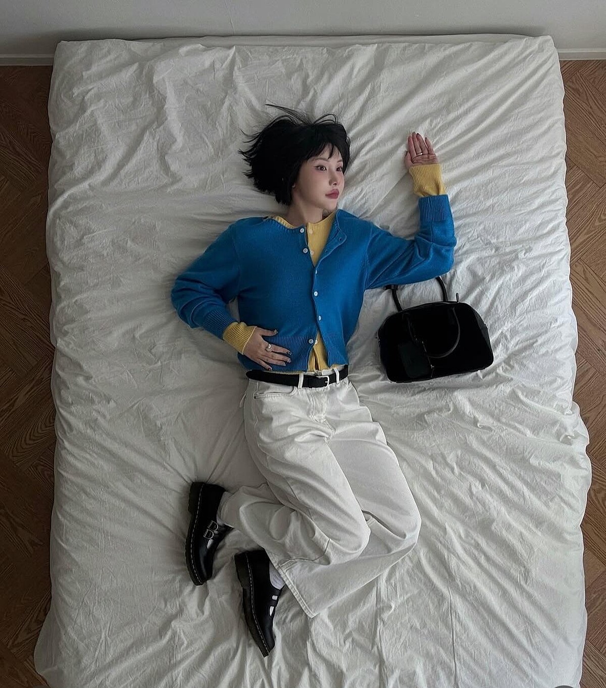 黃與藍兩色的碰撞感更為強烈,不過降低彩度後的兩色其實比想像中更搭。同樣運用襯衫內搭組合或丹寧褲即可輕鬆完成歐若風穿搭,或是在同色系的One Tone造型裡,加入另一色的手袋來點綴,藉由拉開兩色在整體中的佔比(比如80%藍與20%黃),讓歐若風變得更容易上手!