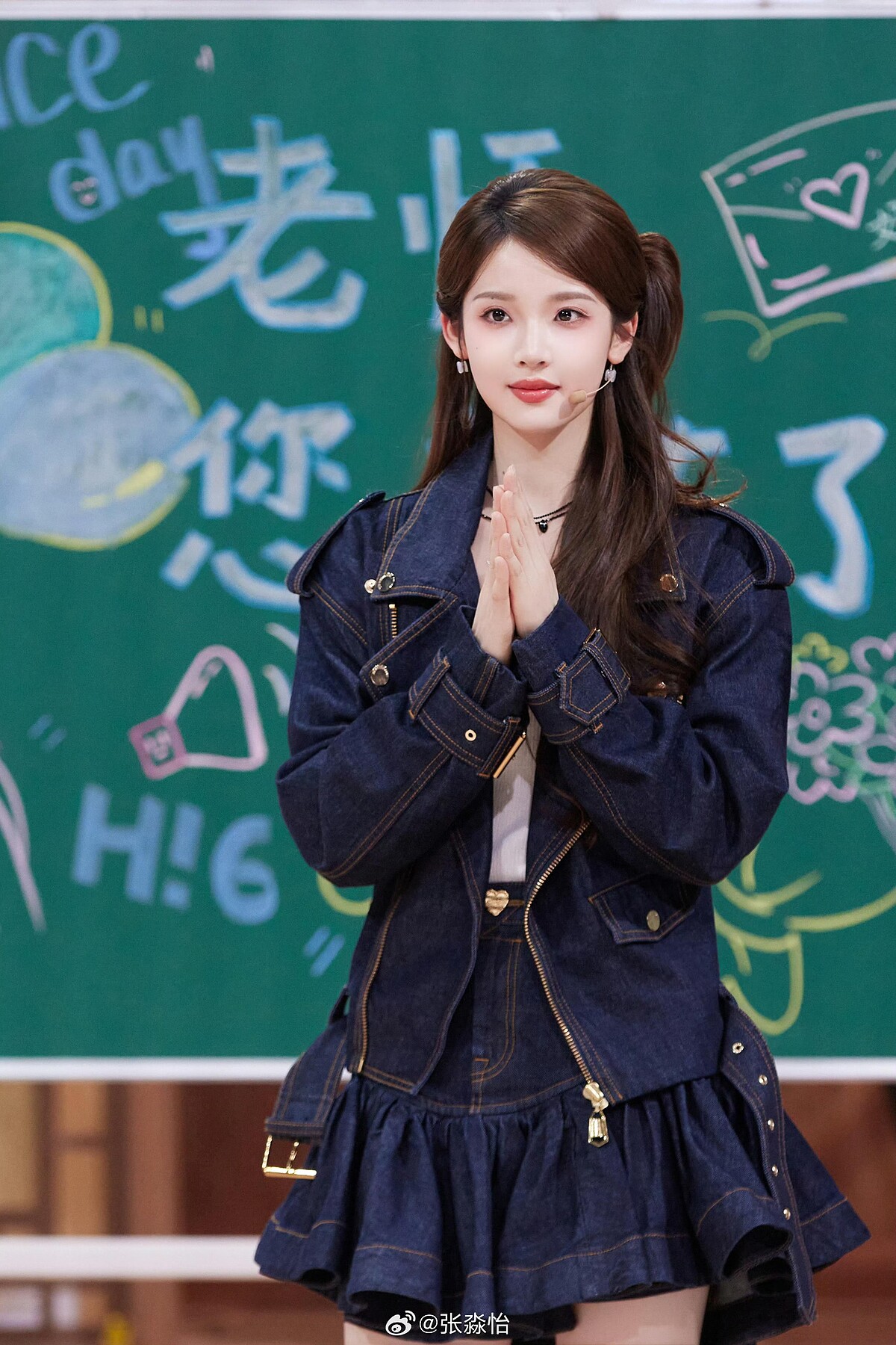 登上綜藝節目時,張淼怡選擇了一套深色丹寧套裝,騎士風格剪裁的外套搭配荷葉邊小短裙、西部風皮靴,混合了率性與少女感,比起劇中總是穿著小男孩風格的「喬喬」,戲外的張淼怡時髦透了。
