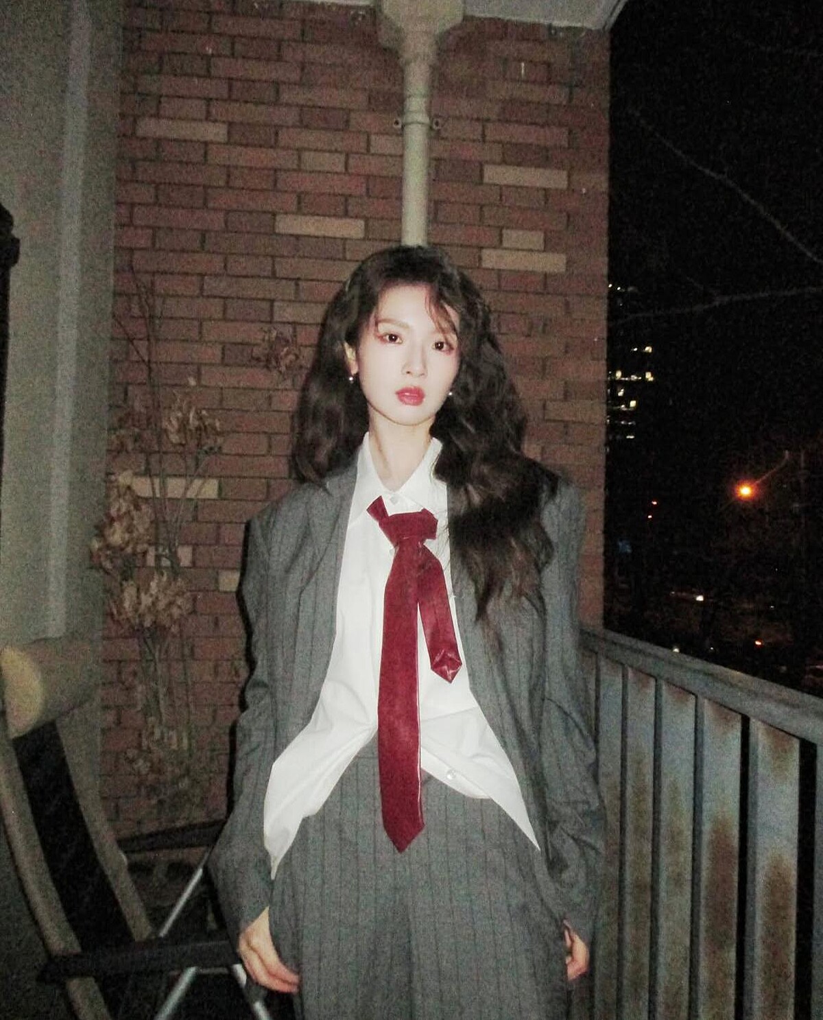 當張淼怡穿上中性西裝造型,已經完全看不見那個可愛「喬喬」的蹤影!她以復古設計的灰色條紋西裝,搭配一條搶眼紅色領帶,打得隨性、慵懶,整體率性不羈,男友風立刻拉滿。