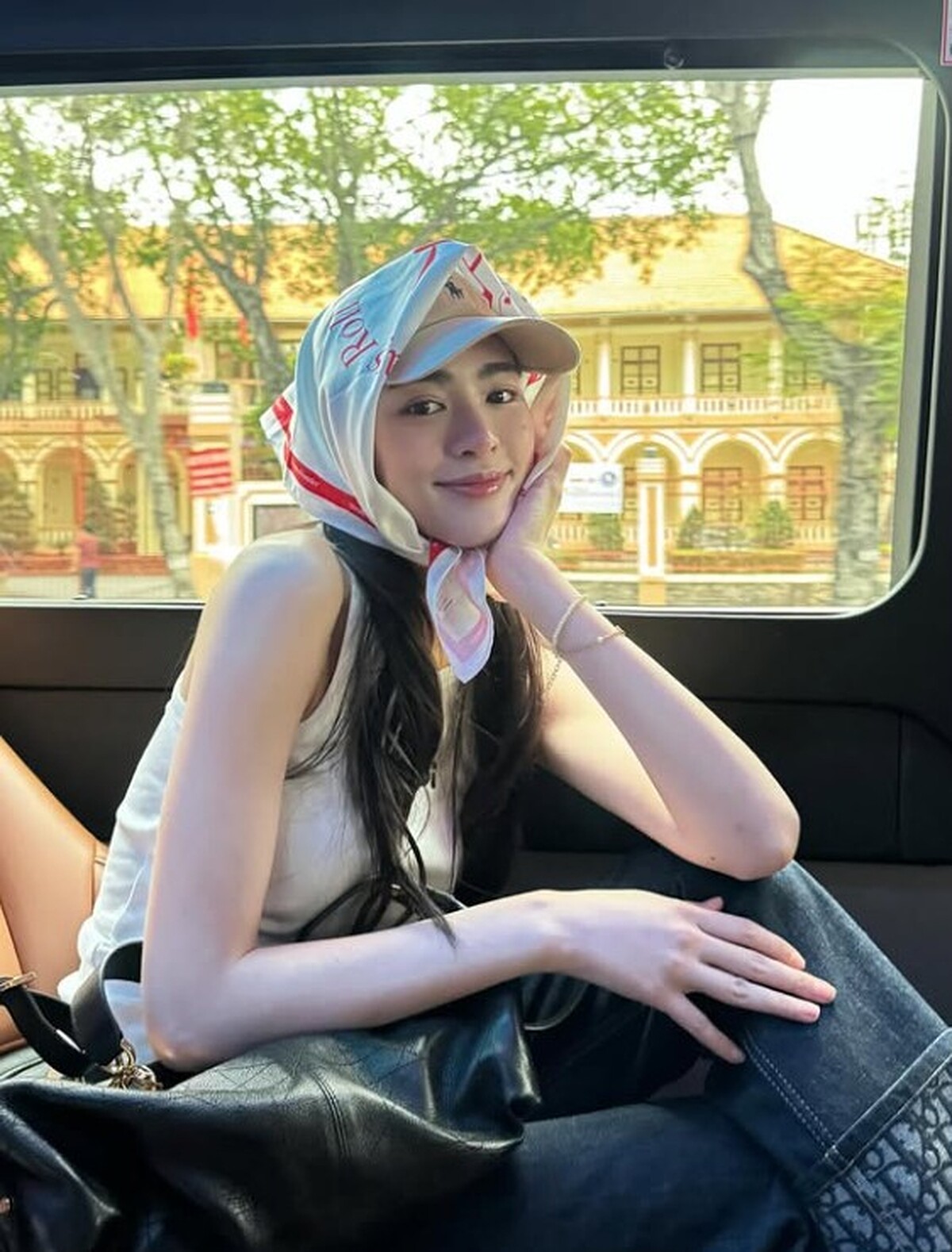 鄺玲玲這套搭配展現了一種隨性又充滿街頭感的風格,簡約清爽的白色背心搭配Dior印有老花的寬鬆反摺男友風牛仔褲,完美融合了舒適與時尚,而他選擇的頭巾來自她個人品牌alwayswonder,棒球帽與頭巾的組合為整體增添活力和俏皮感,這種隨性又不失個性的時尚氛圍,恰到好處地展現了鄺玲玲獨特的時尚態度。