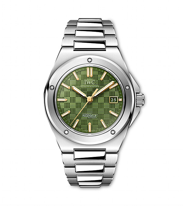 IWC 萬國錶今年以 Ingenieur 工程師系列為主力戰將。一口氣推出五款新作,從萬年曆到三針日期窗,材質有精鋼、18K金和黑陶瓷,多元變化企圖展現全方位技術與設計力,為此款源自1976年 Gérald Genta 大師美學的經典,注入現代工藝語言。其中,少見而醒目的綠色格狀飾紋搭配鍍金指針與時標的色彩面盤版本,是以由布萊德彼特飾演,電影《F1》中車手 Sonny Hayes 角色配戴的錶為靈感(由 IWC 和小布攜手設計),更加深化工程師系列錶款的運動精神。