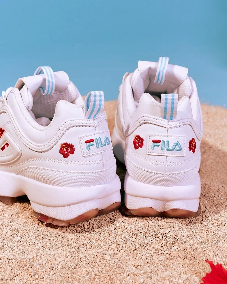 FILA日本扶桑花限定鞋款則結合了女孩們最愛的厚底老爹鞋元素,以清新海洋藍、扶桑花紅與焦糖橡膠鞋底的組合,在潮流時髦中帶入了些微復古運動感,穿上後更容易駕馭各種造型混搭,絕對是今年夏天踩上街立刻就被注目的火爆出圈美鞋,不收太對不起自己!