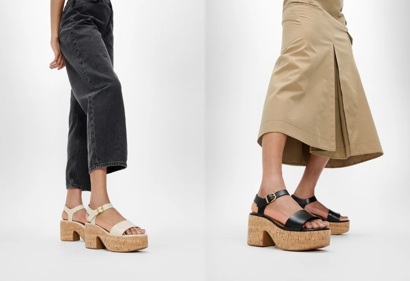 厚底鞋跟與皮革軟木塞紋的組合搭配,俐落優雅兼具,穿上就能瞬間拉長下半身比例,加上還有Cushx™超避震厚跟中底、雙重緩衝墊與輕量設計,簡約率性風格日常輕鬆配都完美。