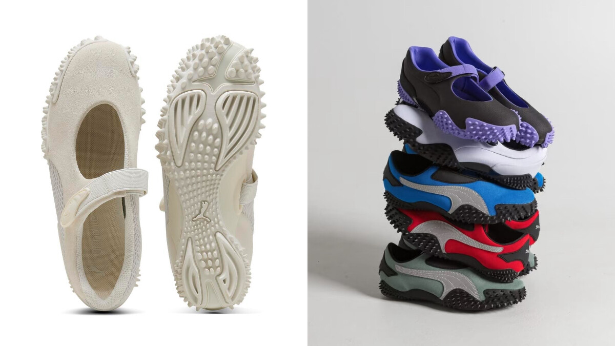 Puma的經典賽車鞋結合芭蕾舞風的Speedcat Ballet、Speedcat go系列鞋款,因Rosé廣告的超強帶貨力,推出後在各地馬上火到斷貨,不過類似的瑪莉珍運動鞋,編輯私心更推薦Puma的Mostro系列,此系列布滿尖角的鞋頭是最大特色,雖然外型充滿叛逆尖刺,穿起來卻是意外的溫柔氣質。