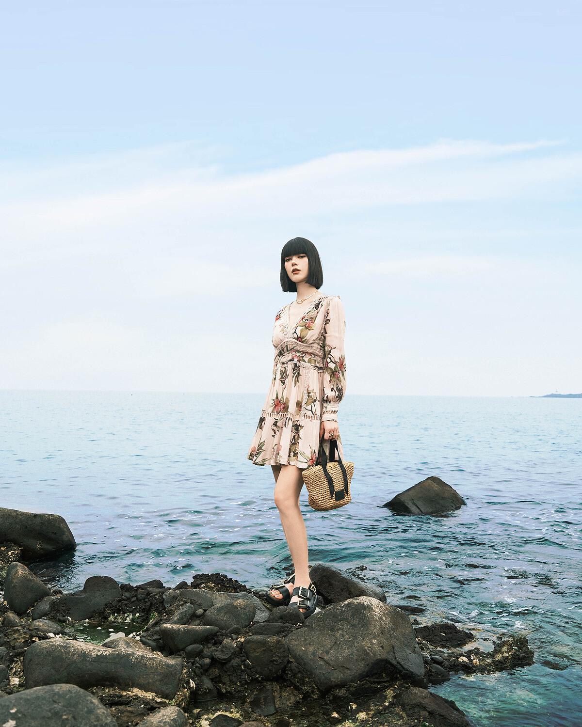 細膩的手繪花卉圖案,是讓飄逸柔美洋裝增添更多精緻感的重點,搭配上充滿夏日度假感的藤編包,以及舒適能修飾腿部線條的皮革厚底鞋,不僅呈現出自然清新的愜意氛圍,更彰顯了都會女子優雅與不羈並存的別致風情,型塑出從容鬆弛優雅自信之美。