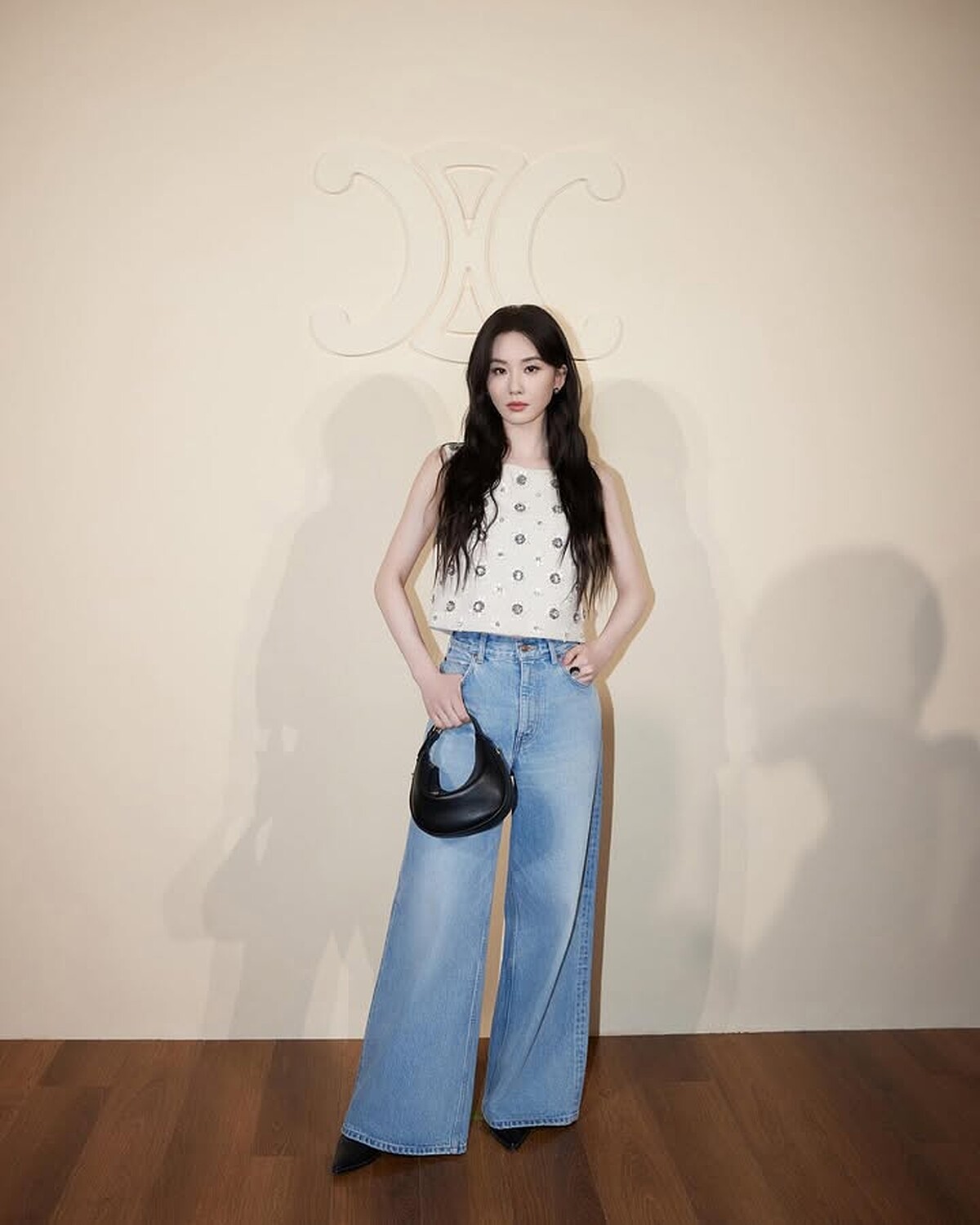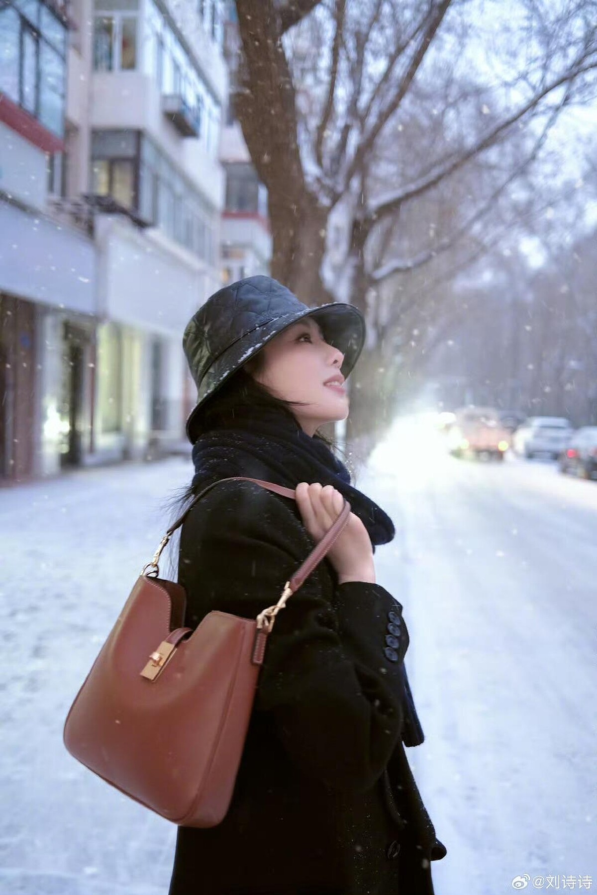 Celine 2025新推出的Lulu系列手袋,以圓潤可愛的半月包型默默擄獲了大批少女的心,低調外觀僅有小小的燙金標誌以及拉鍊上的TRIOMPHE金屬,散發內斂的高級質感,與劉詩詩的氣場十分契合!