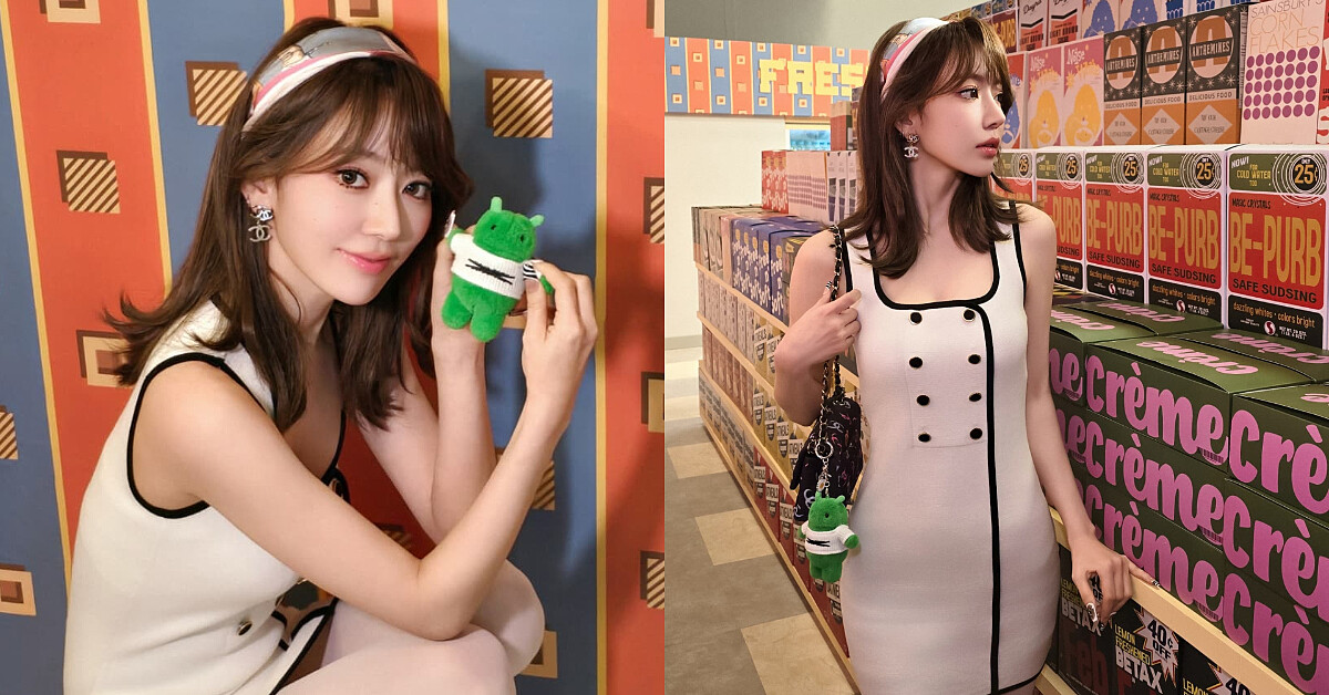 LE SSERAFIM 宮脇咲良前陣子因這個復古女伶的造型太適合她而引起熱議,精緻奢華的香奈兒包搭配來自Android和團體合作的限量系列吊飾,看起來幽默又風趣,默默展現她私下搞笑性格的一面。