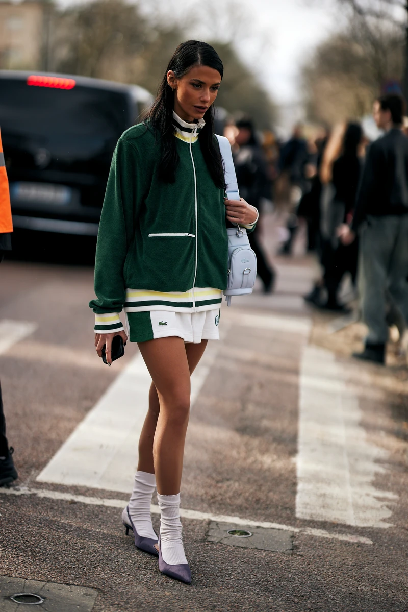 想要中性一點或有個性一點的穿法,不妨挑戰最近又流行起來的「裙褲疊穿」,這個千禧年曾大火過的穿搭又捲土重來ㄈLacoste在2024秋冬系列示範將百褶款式的網球裙穿在西裝褲外層,再搭配Polo衫詮釋時髦的都會運動風。