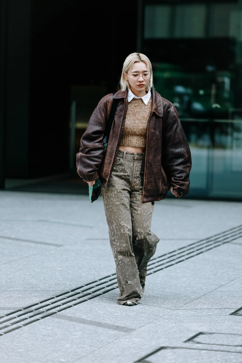 這套穿搭最適合想展現腰線與帥氣氛圍的女生,短版上衣凸顯上半身比例,工裝寬褲則注入街頭潮流感。