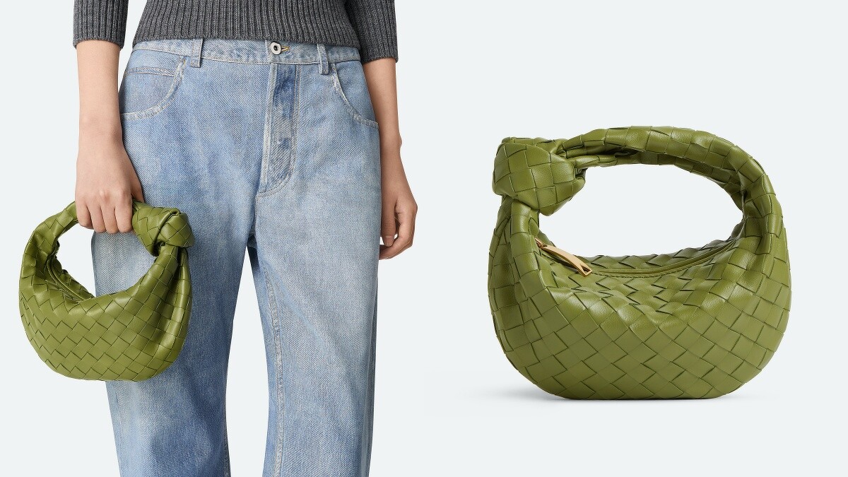 Bottega Veneta的經典編織搭配上圓潤可愛的迷你包身,Mini Jodie半月包一直是品牌的熱賣系列之一,手提把處的紐結設計更是可以為造型增添亮點,目前共有10個色選可以選擇。