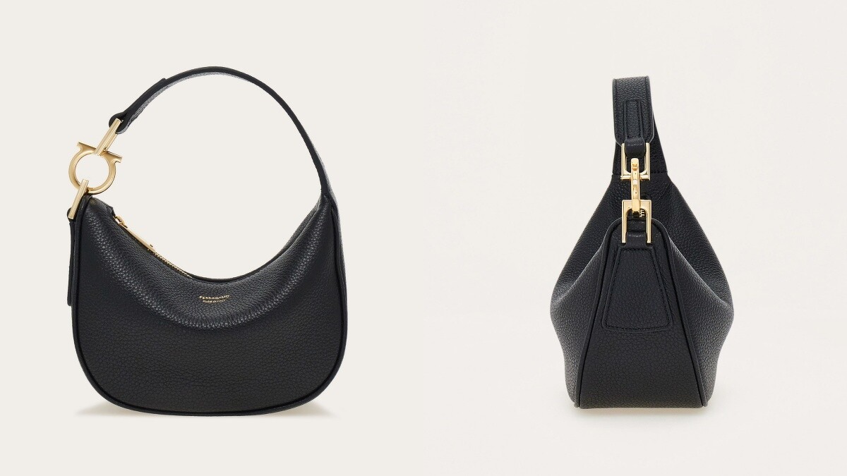 Ferragamo Hug半月包有別於大多類似包型的俐落硬挺感,柔軟的荔枝紋皮革搭配品牌精緻的Logo設計,經典又實搭,而品牌標誌性的Gancini金屬扣點綴在包包背帶處,通勤或正式場合都會很適合。